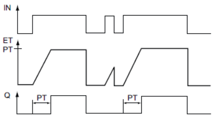 Un TON activa su salida Q después de que la entrada IN permanezca activada durante un tiempo determinado PT.